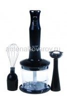 Надежный и удобный блендер поможет готовить ваши любимые блюда с минимальными затратами времени. Идеально подходит для измельчения мяса, сыра, овощей, фруктов и трав, а также для взбивания сливок, соусов и смузи. В комплект входят: моторный блок с корпусом из черного пластика с серебристыми вставками, пластиковая чаша объемом 500 мл с резиновой крышкой-подставкой, насадка с двойными ножами из нержавеющей стали, насадка-венчик для взбивания. Для мытья в посудомоечной машине пригодна только чаша.