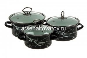 Набор посуды эмалированный 3 предмета (1 + 1,5 л + 2,3 л) Черный мрамор-1-Экстра стиль (Керчь) 134981