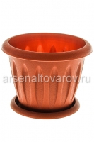 Кашпо для цветов пластиковое 0,9 л 14*11 см с поддоном коричневое Фелиция (С102Т) (Мартика) 680758